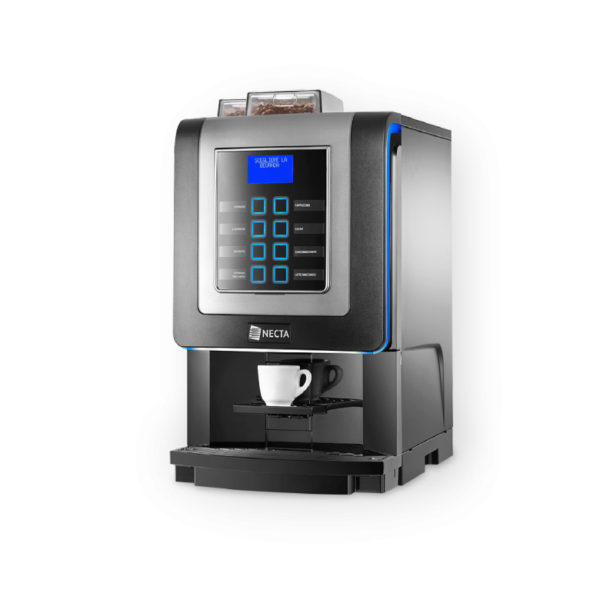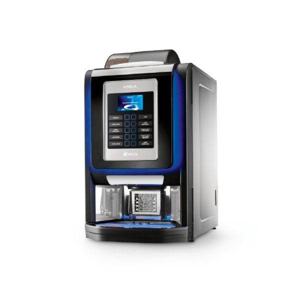 Krea Touch est le nouveau modèle élégant qui vient enrichir la famille Horeca de Necta. Son design attractif, son éclairage décoratif, ses cadres chromés et ses surfaces noires brillantes associées à ses performances inégalées font de Krea Touch la solution idéale pour votre pause-café. Son large écran tactile et son interface conviviale offrent un grand nombre de sélections, une gestion des recettes flexible et personnalisée, une identification des marques de torréfacteurs et la gestion de vidéos et dactions commerciales.